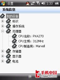 在上面的第一张图中我们可以清楚的看到,这款联想ET880手机采用的是Marvell®PXA270中央处理器,主频为312MHz。
