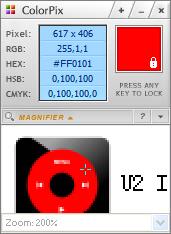 取色点确定之后,敲击任意键可以锁定该点色彩,便于将光标移动到信息区也用于复制代码。前提是,ColorPix 的程序主窗口处于激活状态,而不仅仅是显示在最前。