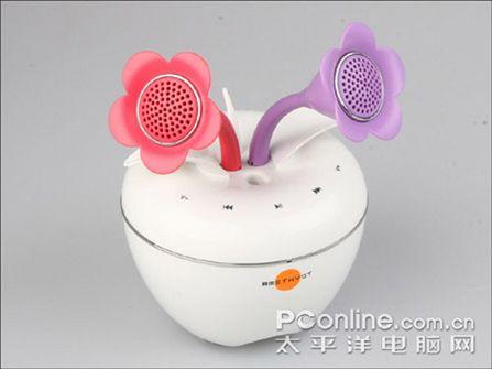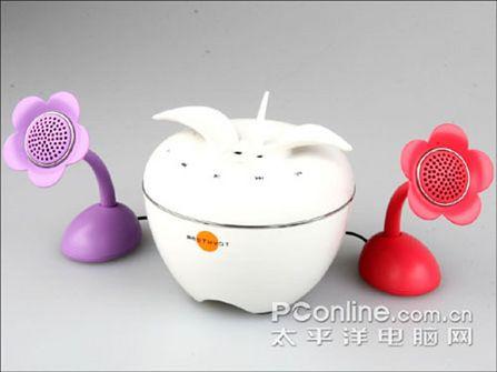 苹果一样的低音箱体可与两支花型卫星音箱整合或分开使用,花型卫星音箱可置于苹果型低音箱体上方,也可独立插在随机配备的支架上,无论是哪种摆放,都能给人耳目一新的感觉。在参数方面,酷睿水晶A-7音箱表现良好,卫星箱3W×2,重低音12W,扬声器单元高音26mm,低音68mm,频率响应为100HZ~20KHZ,放大器失真度小于0.7%。