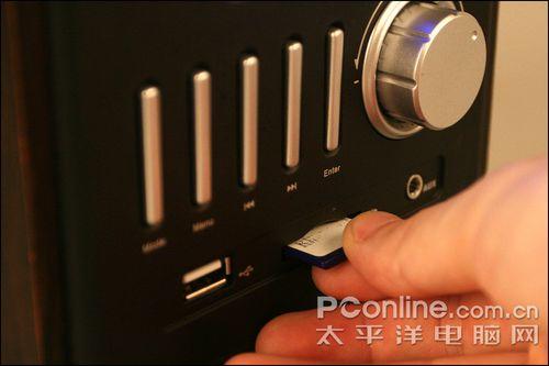 功能上,它除了可以外接U盘、SD卡、3.5mm外部音源外,还能收音。我们认为这个收音功能就是专门针对年龄偏大的用户而设置的。产品正面的众多按钮功能我们就不一一详述了,以免落下写说明书之嫌。