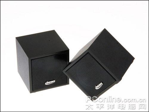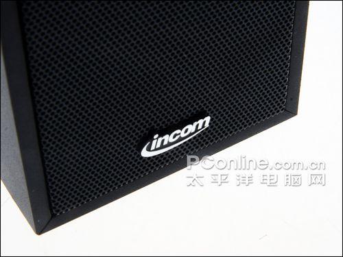 每个音箱正面设计有2.5寸的全频喇叭单元,同时配以黑色的铁丝网罩保护,一种黑色带COOL感不由的从心而起。而在黑色网罩下方,还设计有金属质地的“INCOM”LOGO,灯光下耀眼发光,同时也驱除了黑色的单调感。
