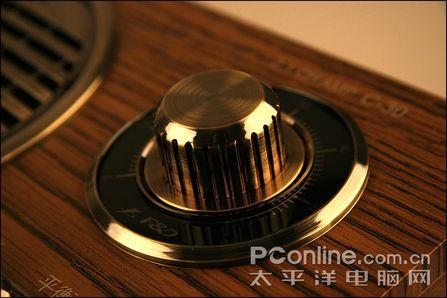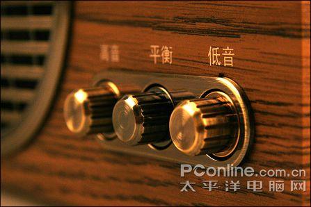 音箱的调节旋钮较多,并且全部采用附铜设计,旋钮设计基本上与C10相同,只是种类更多,具备主音量、高音、平衡、低音四项调节功能。