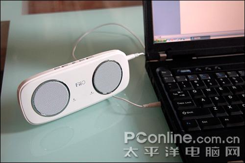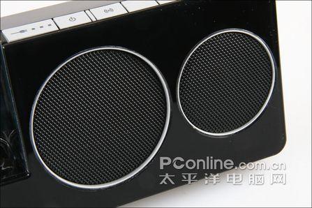 单元配置上,这款音箱设置了两个2" 2w的纸盆单元,据说这款产品音质优于轻骑兵另一款新产品X20。不过笔者认为这样一款产品不应该太过强调它的音质,就像用随身听与台式CD比音质一样,实际上意义并不太大(主要是用途不一样,定位不一样,比起来有何意思)。