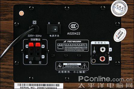 在接驳连线下方,有该音箱的产品具体信息,如型号、产品生产地、序列号等,以示该产品出产之正规。