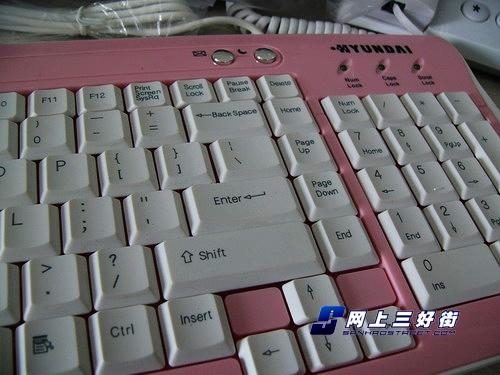这款现代推出的的K501键盘最大的亮点就在于它那十分靓丽的外观部分,键盘最薄的地方仅为1厘米左右。纯白色按键部分与嫩粉色的边框部分产生比较明显的层次感,让键盘的外观不但让键盘更具时尚气息,还可以让键盘成为所使用环境中的一件装饰品。