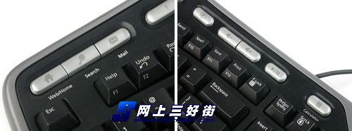 在功能方面,这款微软的人体工学4000键盘具有强大的多媒体功能,键盘上方是设计比较常规的快捷键,其中WEB/Home、Search、Mail、Outlook等快捷键在使用者上网的时候会提供很大的便捷。在空格键的下方还有着一对前进、后退键,形状颜色与键盘整体搭配得相当完美。在浏览网页时可以快速的切换前、后一张网页,相当方便,对于缺少此功能的鼠标来说是个很好的补充。