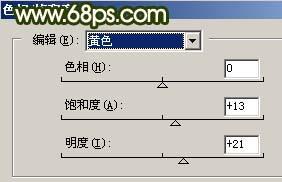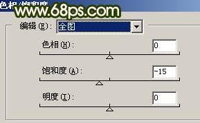 10、创建色相/饱和度调整图层,参数设置如图12,13,效果如图14。