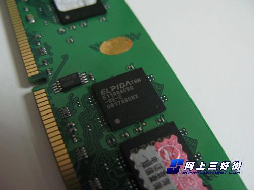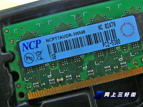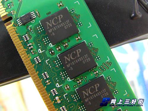 这款产品的金手指部分采用电镀镀金工艺制作,上面具有明显的经过插拔的痕迹,证明这款产品在出厂的时候100%经过检测,质量很有保障。在颗粒方面,采用奇梦达原厂颗粒制作,虽然打上了NCP的标志,但我们仍然可以从颗粒的型号上确定它的源头。这款产品性能稳定,价格较低,具有极佳的性价比优势。
