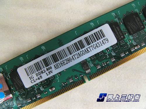 该亿能内存基于绿色6层PCB电路板制作,双面16颗粒,每颗粒容量为64MB。双面皆采用大面积履铜工艺,具有较强的抗干扰性。电镀金手指,导电性能好,经得起多次插拔。颗粒出自奇梦达原厂晶圆,精细筛选,确保了产品的稳定性。而在兼容性方面,由于DDR2标准就是由奇梦达制定,所以奇梦达原厂内存也是各厂商的标尺,兼容性最广泛,兼容于任何品牌的质量合格的DDR2内存和主机板。