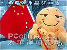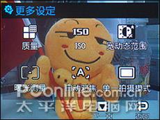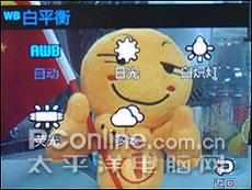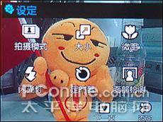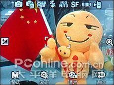在三星D988的拍照界面轻轻触击屏幕就会显现拍照的设定界面,点击显现出来的白色LOGO就会进入不同的功能设定界面。在拍摄界面的上方呈半透明条框是当前状态下所有设定的拍照参数,一目了然。