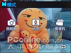 三星D988的拍照模式提供了三种,分别为:照相机、场景与摄像机模式,点击三个图标会进入相应的拍照模式。此外三星D988的拍照功能设定也非常丰富强大,提供了:拍摄模式、照片大小、微距拍摄、闪光灯、定时器、面部识别等功能设定,相比数码相机而言一点也不逊色。