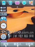 左侧的Widget桌面组件除了能隐藏外,还可以把上面的快捷图标拖到屏幕任意位置进行简单的操作,不用时再把它扔回左边的面板里就可。点击拖出来的图标后会进入相应的程序界面,这种只有在PC机上才能实现的绚丽功能绝对颠覆了人们对以往手机的认识。