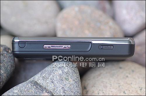 三星D988的机身左侧只有音量键与HOLD锁定键,如此简洁的按键设计也标示出了商务机化繁为简的设计理念,让操作随使用者的“心”动而动。