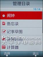 三星D988丰富的小工具与手机设定界面。三星D988的小工具包括:闹钟、备忘录、记事本、计算器、定时器、词典等,这些实用的小工具极大的方便了商务认识在工作和生活中应用。