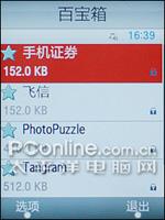 三星D988还提供了两款游戏以供消遣,一款是积木,另一款是拼图游戏。此外,还预装了手机证券、飞信、等JAVA应用程序。
