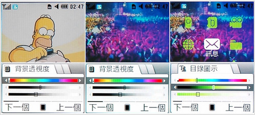 从 Soul U908 开始,Samsung 就亮出了全新图像化接口,具有更详实直觉的操作性和活泼版面二大特色,而这些改良在 Soul b 身上都看得见。在内建的 3 种主题以外,Soul b 还提供了自制和一些更动样式的编辑功能,包括背景图片,菜单反白区域、选择项目,状态列信息等各层目录,都可以改变色彩、透明度,功能图案样式也有一些选择可以使用。主题编辑分为一般和专家二种模式,其中专家模式看起来有点复杂,但其实你只要按照步骤一个一个试,再对照屏幕上的成果预览,要掌握技巧也不会太难,建议大家可以花点时间试试。