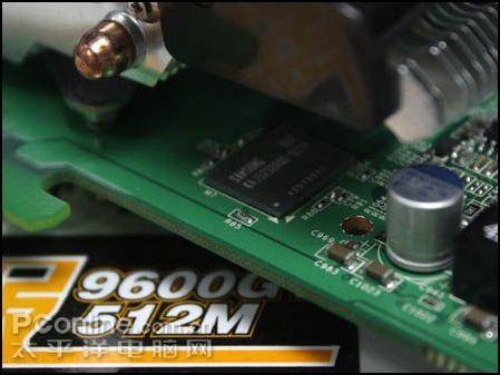 显存方面配备了三星原厂 512M GDDR3 ,拥有完整 256bit 位宽,显存速度 1.0ns ,频率 1800MHz ,显卡速度要比缩水 9600GT 快上 20% 。 1.0ns GDDR3 显存理论运行频率为 2000MHz ,显存速度越快,显存所能运行的频率就越高,加上三星显存一贯强大的超频潜力,显存跑 2000MHz 不成问题。