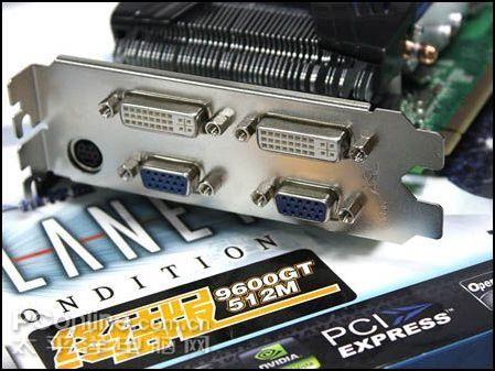 接口部分,祺祥 9600GT 512M DDR3 功夫之王采用最新的第二代多输出接口,提供双DVI+双CRT+S-video的接口组合,相比第一代多输出无法支持的单路DVI与CRT同时显示,第二代多输出接口可以支持超过十九种显示输出模式,最大支持五个显示器同时输出!