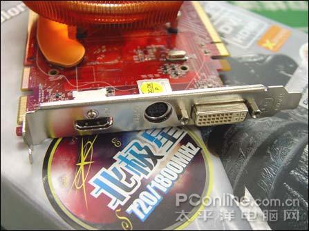 输出部分,迪兰恒进 HD3850 北极星 HDMI提供了DVI+S-Vedio+HDMI输出接口设计,通过转接头可满足大众用户的使用需要。