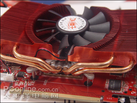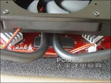 散热部分,祺祥 9600GT 512M DDR3 功夫之王采用了双热管散热风扇,散热器拥有最为特色的双穿紧佩热管工艺,热管一次穿过每个FIN的两个接触点,导热及散热面积均增长一倍,极大提升了热管散热效器,经测试其效能可以与四热管散热器相媲美。