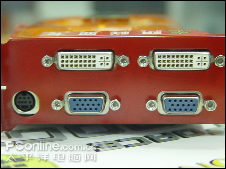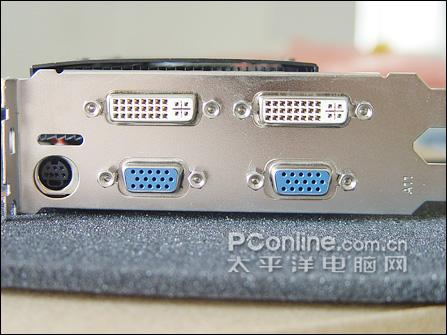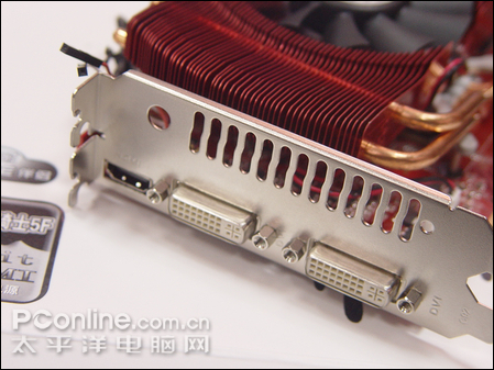 输出方面配备了双 DVI+S-Video ,用户可以根据需要灵活转换为各种类型的双头输出模式, HDMI 的用户则可以通过 DVI-HDMI 转接头实现,这跟所有 ATI 公版输出 HDMI 方案一致。