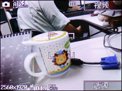 在启动拍照功能之后,我们看到原来的导航键会亮起几个拍照快捷功能的指示灯,微距、防抖、闪光灯、进入相册都是可以在这里快捷操作。