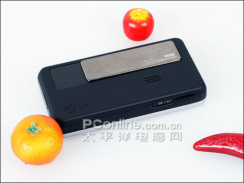 LG KC550的背面其实就是采用了数码相机的设计模式,看上去基本就是数码相机的模样。镜头护盖是个特色的设计,横向拉开就能启动拍照功能,我们也可以看到闪光灯和辅助灯,配置也算是比较专业的。