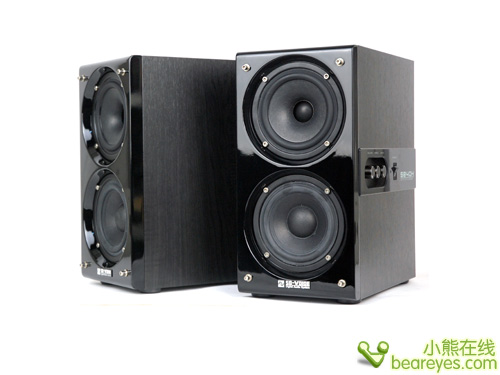 目前,由于小桌面平台的概念,使得4寸书架箱越来越受到关注。市场也出现了很多4寸书架箱的热点产品,而采用双4寸单元的书架箱在市场中并不多见,可以说索威是第一个拿出双4寸单元书架箱产品的公司。提起索威,相信大家并不陌生了吧,旗下的共点同轴技术在多媒体音箱中的采用,以及其产品的性价比都是市场中的关注点。早在2006年,索威就推出了著名的双炮王换代产品S840,并且赢得了不少好评。而在技术革新之后,在设计理念上又有所突破的索威又拿出了新颖的产品,双4寸单元的S840H。