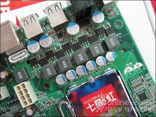 主板的供电部分的用料及做工是考察一款主板的重要依据,七彩虹 战旗C.P43 X3采用五相固态供电回路设计,R50封闭式电感搭配全固态电容和每相2个MOS管,用料十足。