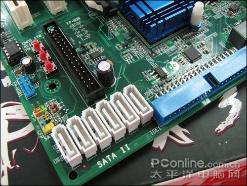 七彩虹 战旗C.P43 X3由ICH10提供6个SATAII3.0Gb/s接口和1个外部eSATA标准接口,并通过第三方芯片JMB368 PATA控制器提供2个IDE接口。