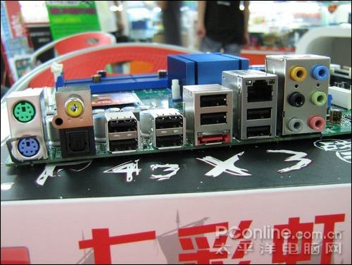 七彩虹 战旗C.P43 X3提供PS/2口,8个USB口以外,还板载千兆网卡,8声道HD Audio 音频,SPDIF光纤输出,以及1个外部eSATA。