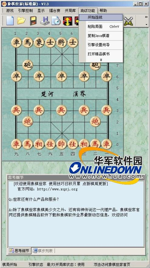 1 点击象棋世家菜单 “高级功能”=>“开始连线”, 启动连线器