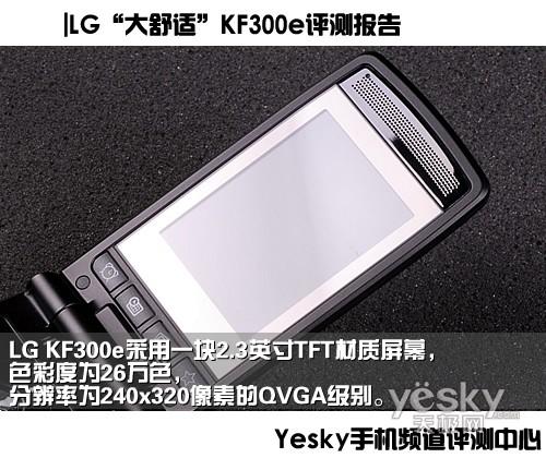 LG KF300e采用了2.3英寸TFT材质屏幕,色彩度为26万色,分辨率为240x320像素的QVGA级别,虽然分辨率与色彩度都只能算中规中矩的主流配置,但该机实际的屏幕表现还是有不小的惊喜。