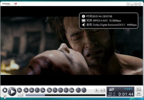 为了能更好展示MCP7A芯片组的高清解码能力,我们把处理器换成最低端的赛扬420,播放的片源为《X-Men:The Last Stand X战警3》,它采用H.264编码,解释度为1080P,保留了无损的4.5M码率的DTS-HD Master Lossless Audio音轨。我们采用了其中第五张碟的狼人大战凤凰的高特效场景来完成本次的对比评测。