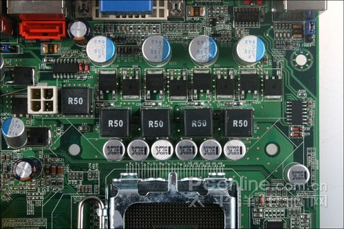 CPU滤波电路方面,主板采用四相电路设计,每相配备一上一下两个Mosfets,前级采用了多可固态电容。