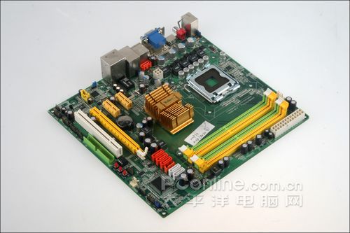 我们收到的冠盟MCP7A主板仍属于工程样品,因此该主板没有型号,同时也存在“飞线”情况。冠盟MCP7A主板采用了绿色PCB底板设计,mATX板型符合整合主板一贯风格。用料和做工方面,主板显得中规中矩。