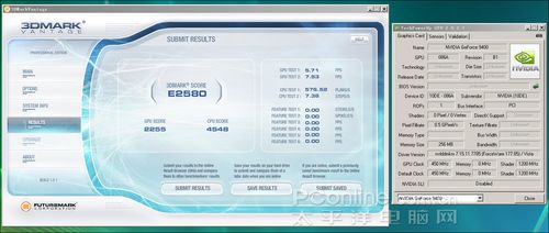 即使这款MCP7A主板还存在不少的BUG(无法同时使用两条内存等),但在3D Mark Vantage中的Entry级别中仍然取得了2580的高分。