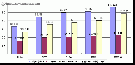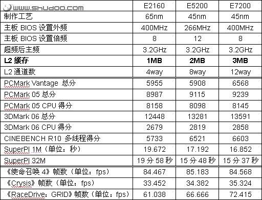 为了让二级缓存容量对性能的影响得到最大程度的体现,我们统一将处理器超频到了3.2GHz这个较高的频率。但是在共同实现超频达到3.2GHz主频时,我们的E5200和E2160使用的方式是不相同的。E2160因为倍频较低,外频只有在400MHz时(400MHz外频×8倍频=3.2GHz主频)才能实现3.2GHz,而我们的E5200却无法达到400MHz的高外频,只能通过266×12(266MHZ外频×12倍频=3.2GHz主频) 的模式下实现3.2GHz。这里我们不得不承认E2160在这么高的外频下,会更有利于发挥的自己性能的。而在实际测试结果上,凭借二级缓存容量更大的E5200仍然能够轻松的超越E2160,我们也相信在扣除E2160高外频所带来的性能提升后,我们还能看见它与E5200之间更大的性能差异。这里也充分说明了二级缓存容量对于处理器性能的重要性。在具体每一个测试项目中,由于每个测试项目对二级缓存的依赖程度不尽相同的,测试成绩的提升也不尽相同,但是可以肯定的是更大二级缓存对系统性能的提升肯定是有帮助的。从SuperPI的CPU整数运算能力和CINEBENCH R10的影视图片渲染能力上看,二级缓存较大的处理器能发挥出更大的性能优势。此外,E5系列与E7系列相比,虽然E7系列性能小幅度领先,但把E7系列在外频上所占有的优势扣除后,相信并没有像E5200系列领先E2160系列这么明显。虽然在二级缓存决定着处理器的性能,但是二级缓存也决定着处理器的制造成本和销售价格,从价格和性能的综合比较上来看,如果没有特殊要求的用户选购二级缓存为2MB的E5200看来实是目前更具性价比的。