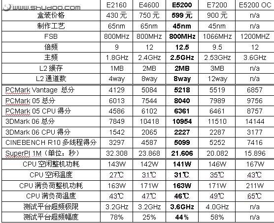 为了让消费者进一步了解新品E5200处理器的性能水平和功耗情况,能清楚知道这新一代45nm工艺处理器和上一代65nm工艺产品的各项区别,我们将为大家进行一次多颗处理器在各个方面的对比测试。希望能为大家的选购提供帮助。