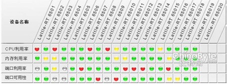 在对网络设备的可用性监控以红、黄、绿、灰状态灯展示的同时,也对网络设备的接口信息,包括操作状态、管理状态、接口发送/接收速率等具体指标也进行实时的监测。管理员可以一目了然地看到发生故障的接口及当前接口的性能。