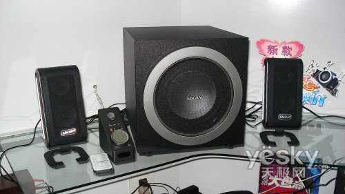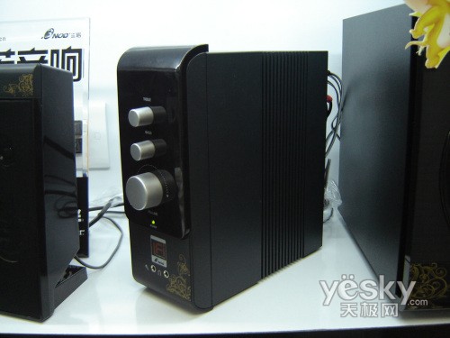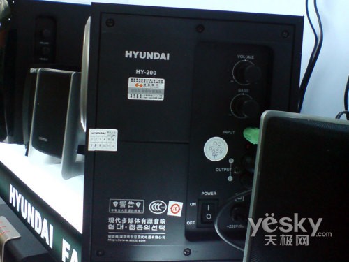 现代HY-200采用了防磁设计,右侧为音量及低音调节旋钮,设计非常人性化。主音箱为黑色磨砂外观,木质箱体能有效杜绝谐振。同时,HY-200配备了4寸的重低音喇叭和2个3寸全音喇叭作为副箱,能使音色更加纯正、亮丽,而低音方面表现则更加强劲,非常适合播放节奏较快的音乐。