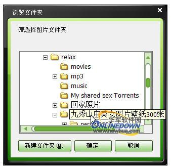 青苹果充分考虑了用户的需求,还允许我们导入自己文件夹中的图片。我们只要右击图片,选择“导入我的图片”即可打开如图7所示的“浏览文件夹”对话框,选中自己保存有照片的文件夹(里面有我们最爱人的照片或风景图片),之后就可以看到效果(如图8)。