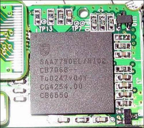 其中SAA775x是最常见的飞利浦系列解码芯片,大家见到的的PHILIPS芯片解决方案的拆机图一般都SAA7750EL/N102的芯片。SAA7750拥有73MIPS的24位DSP和32位ARM RISC处理器,具备可编程DSP架构,可以支持多种音乐格式解码,支持解码速率为8Kbps至320Kbps,高达90dB信噪比,兼容多种EQ音效,支持Line-in、扩展卡以及其他主流MP3解码芯片特性。