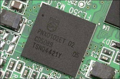 与此同时,飞利浦也并没有放慢脚步,将主要应用于数字电视、Hi-Fi音响等专业领域PNX系列芯片引入便携随声听的世界。PNX010x系列解码芯片包括PNX0101、PNX0102和PNX0105。PNX0101和PNX0102主要应用于闪存MP3随身听,PNX0105则是针对采用微硬盘为存储介质的多媒体播放器。PNX0101内嵌4Mbit的可编程FLASH,只支持USB1.1。因而所有采用PNX0101芯片MP3所配备的USB2.0接口,都是通过另外增加USB2.0控制芯片来实现的。而PNX0102则内嵌有8Mbit的可编程 FLASH,自身提供了对USB2.0的支持。PNX0105同样支持USB2.0,而且还支持GDMA和IDE(ATA/ATAPI/PC Card)等接口,但它没有内置可编程FLASH。
