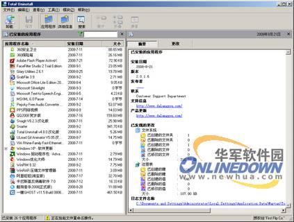 通过Total Uninstall 界面图可以看出,Total Uninstall 使用也将会相当简单。通过Total Uninstall 可以了解我们系统里安装的软件,及软件安装的详细信息。