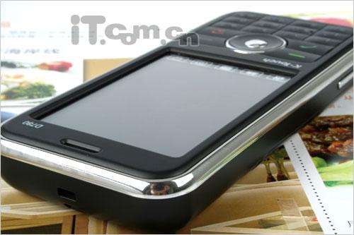 天语D780的手感非常舒适,带有银边而衬托机身的银色边框的圆形导航键,数字按键部分都是以国产手机经典设计三排四列,“*”、“0”、“#”三键均移到了右边,相信各位朋友对这种键盘的设计不会觉得陌生了。