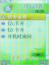 双网双待不只是在卡槽上就可以展现,打开手机电源,在屏幕左上方可以直观地看到有两个信号标示,并用G和C加以区分。而且在内部设定上完全支持双卡全开和单卡使用和开机选卡使用的方便功能,方便用户在不同情况下使用不同的电话号码,在这方面天语D780做得十分出色。