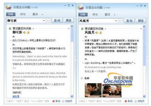 当我们刚刚说起来八零后的时候,九零后就出现,当我们还在说hip hop多时髦的时候,非主流也出来了,随着国际化的发展,当我们和外国朋友聊天的时候,你该如何向他解释非主流、九零后、御宅族、斑竹这样稀奇古怪的词呢?就算不需要与外国朋友交流,在你与世隔绝的忙碌了几天,别人突然戏称你是御宅族的时候,你若不知道是什么意思,岂不是很尴尬?网络查词就很好的解决了这一问题,谷歌金山词霸可以很好的解决各种流行新词的释义,如下图。
