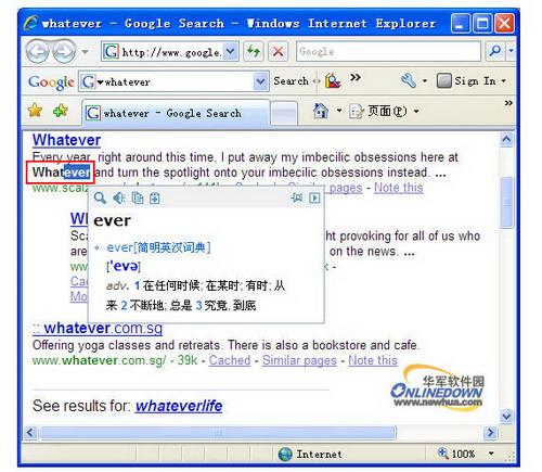 谷歌金山词霸支持屏幕取词和局部取词,如下图,对单词进行局部取词,在我们网络冲浪的时候可以随时帮助我们查询词汇,或者选中一个单词中的几个字母进行查询。