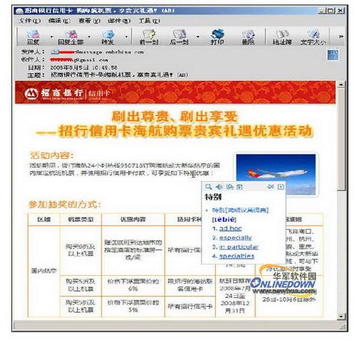 很多上班族,都要用到邮件,公司间的交流不可避免的会涉及很多语言方面的内容,谷歌金山词霸非常好的解决了邮件中的翻译问题,目前的邮箱工具都可以兼容,支持中英文互译,如下图。
